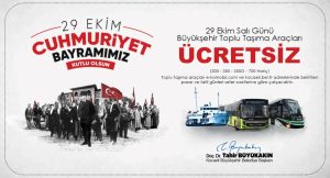 Büyükşehir, 29 Ekim Cumhuriyet Bayramı nedeniyle otobüs, raylı sistemler ve deniz ulaşımında vatandaşlara tüm gün ücretsiz hizmet verecek