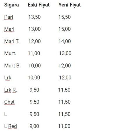 Philip Morris grubu sigara markalarına zam yapıldı. En yüksek sigara gaziantep bayan escort fiyatı 13.50 TL’den 15,50 TL’ye çıktı. Paket başına 2 liralık zam uygulandığı görüldü.
