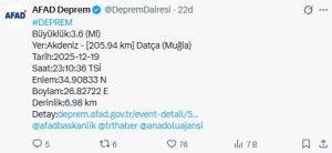 Son dakika depreme ilişkin açıklama yapan AFAD, depremin Muğla’nın Datça ilçesinde de hissedildiğini belirtti.