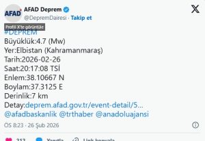 Kahramanmaraş’ın Elbistan ilçesinde saat 20.17’de 4,7 büyüklüğünde deprem meydana geldi.