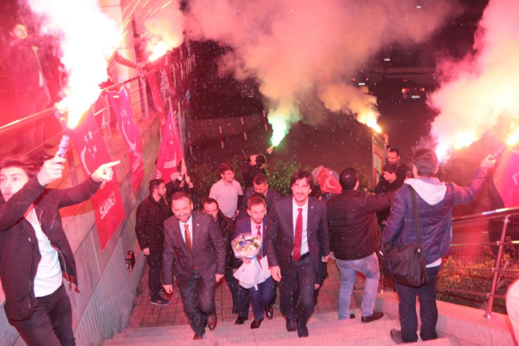 Özen’i salonun dışında slogan ve meşalelerle karşılayan çok sayıda genç salona girişine kadar kendisine eşlik etti. Konuşması için sahneye çıkan Özen dakikalarca gençlerin yoğun tezahüratı ve sevgi gösterisiyle karşılaştı. Özen’in sahneye çıkışıyla salonu ayağa kaldıran gençler ‘Bu gençlik seni başkan yapacak’ diyerek slogan attı.