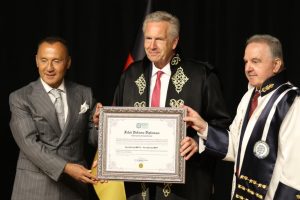 Kocaeli Sağlık ve Teknoloji Üniversitesinde (KOSTÜ) düzenlenen fahri doktora tevdi törenine; Kocaeli Vali Yardımcısı Aslan Avşarbey, Dışişleri Bakanlığı Daire Başkanı Pınar Gülün Kayseri, Kocaeli Büyükşehir Belediyesi Başkan Vekili Berna Abiş, KOSTÜ Mütevelli Heyet Başkanı Dr. Talip Emiroğlu, Rektör Prof. Dr. Muzaffer Elmas, akademisyenler ve öğrenciler katıldı.