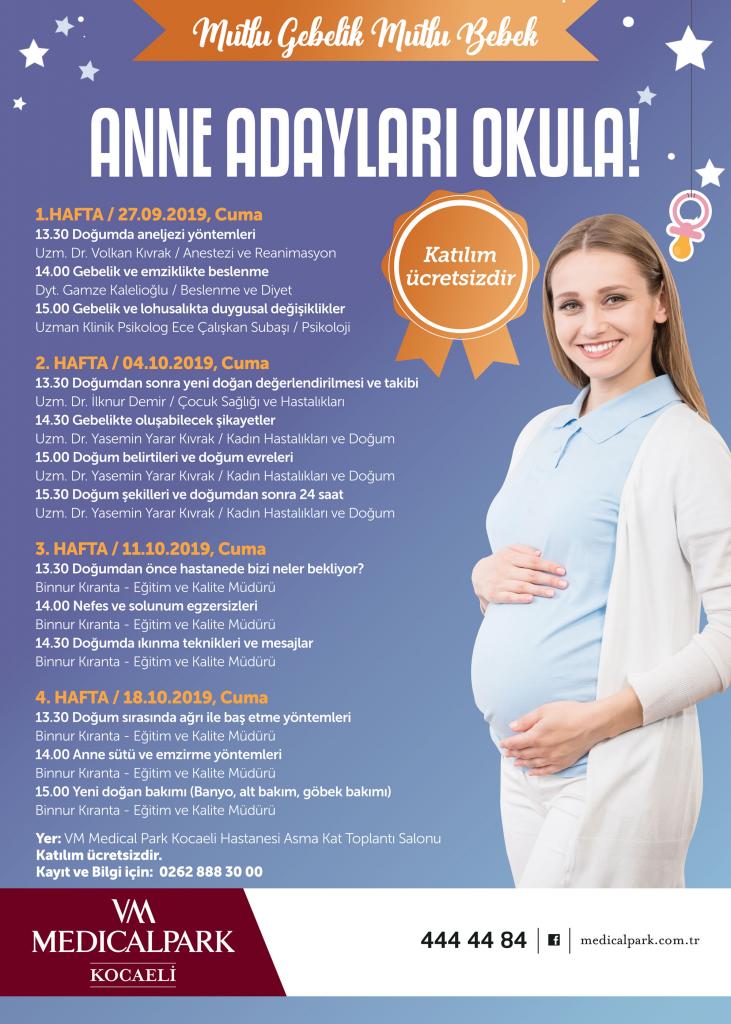 VM Medical Park Kocaeli Hastanesi’nde  “Mutlu Gebelik, Mutlu Bebek” Gebe Okulu, 27 Eylül’de kapılarını yeniden anne adaylarına açıyor. Gebe Okulu’na katılım ücretsiz olacak.