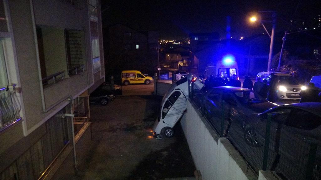 İzmit İlçesi Yeşilova Mahallesinde akşam saatlerinde meydana gelen trafik kazasında, Aslı Sokakta seyir halinde olan Salih İzbudak idaresindeki 34 YK 7936 plakalı otomobile, arkasından gelen ve plakası alınamayan bir hafif ticari araç çarptı. Çarpmanın etkisi ile kontrolden çıkan otomobil park halindeki 34 DH 4108 plakalı otomobile çarptıktan sonra yol kenarındaki bir apartmana ait otoparka dik olarak düştü. Çarpmanın etkisiyle savrulan park halindeki otomobil ise yanında bulunan park halindeki 34 SE 6493 plakalı bir başka otomobile çarptı. Kazada otomobil içindeki Salih İzbudak ile yanındaki Uğur Demir bahçeye düşerek motor kısmının üzerinde dik duran araçtan kendi imkanları ile dışarıya çıkmayı başardı. Şans eseri hafif yaralanan İzbudak, ambulansla Kocaeli Üniversitesi Araştırma ve Uygulama Hastanesine kaldırılarak tedavi altına alınırken polis ekipleri olayla ilgili soruşturma başlattı. Otoparka düşen otomobil ise çekici ile otoparka götürüldü.