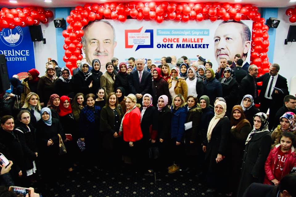 AK Parti Derince Belediye Başkan Adayı Zeki Aygün için düzenlenen Aday Tanıtım toplantısı Zübeyde Hanım Kültür Kültür Merkezi’nde yapıldı. Toplantıya Büyükşehir Belediye Başkanı İbrahim Karaosmanoğlu, Büyükşehir Belediye Başkan Adayı Doç. Dr. Tahir Büyükakın, İl Başkanı Abdullah Eryarsoy, Milletvekilleri İlyas Şeker, Radiye Sezer Katırcıoğlu, Cemil Yaman ve Mehmet Akif Yılmaz, İl Kadın Kolları Başkanı Serpil Yılmaz, İl Gençlik Kolları Başkanı Emre Kahraman, AK Parti İlçe Başkanı Selçuk Çakıroğlu, MHP İlçe Başkanı Zeki Omurca ve çok sayıda partili katıldı.