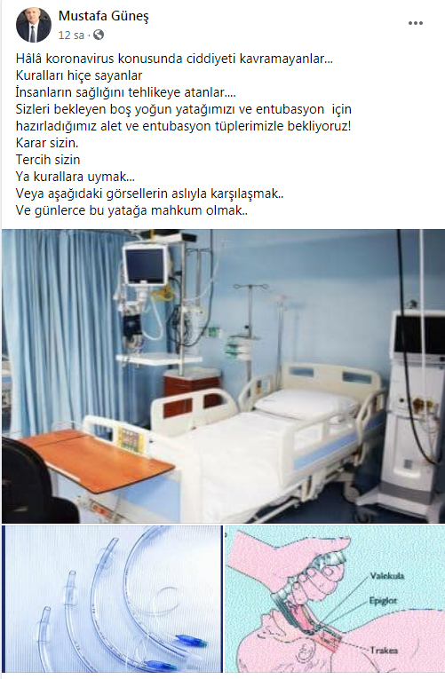 Sizleri bekleyen boş yoğun yatağımızı ve entubasyon  için hazırladığımız alet ve entubasyon tüplerimizle bekliyoruz!