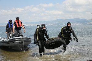 Yapılan etkinlikte Kocaeli Büyükşehir Belediyesi deniz araçları, Kocaeli Emniyet Müdürlüğü deniz araçları, Kocaeli Emniyet Müdürlüğü dalgıç ekibi, LİMAŞ Liman A.Ş’nin dalgıç ekibi ve Başiskele Belediyesi’nin çöp toplama araçları ile birlikte temizlik işlemi sonunda 1,8 ton atık toplandı. Araba lastikleri, cam şişeler, demir ve plastik sandalyeler, alışveriş arabası ve demir çöp kovası gibi atıkların denizden çıkarılması dikkat çekti.