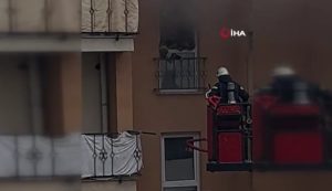 İtfaiye erinin desteğiyle nefes alması sağlanan ve pencere kenarına getirilen vatandaş, merdivenli araçla aşağı indirilerek sağlık ekiplerine teslim edildi.