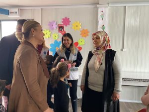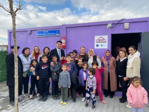 Burada eğitim ve sağlık konteynerlerimiz var. Kadın Doğum Uzmanı Op. Dr. Mehmet Salıcı ilk günden beri burada. Mehmet Bey, gebe kadınların sağlıklı bir süreç geçirmeleri adına gönüllülük esasıyla destek veriyor. İzmit’teki doktor arkadaşlarımız da buraya ultrason aleti gönderdiler. Kendilerine de çok teşekkür ediyorum” dedi.
