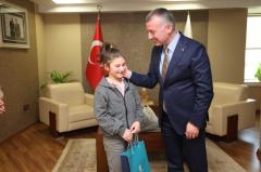 Kocaeli Büyükşehir Belediye Başkanı Tahir Büyükakın, 23 Nisan Ulusal Egemenlik ve Çocuk Bayramı vesilesiyle başkanlık makamını Albay İbrahim Karaoğlanoğlu İlkokulu 6. sınıf öğrencisi Sahra Zeynep Güner’e devretti. “Geleceğimizin teminatı çocuklarımızın aydınlık geleceği için, fedakarlıkla çalışacağız” açıklamasını yapan Başkan Büyükakın, “Çocuklarımız her şeyimiz. Onların yaşamında güzelliklerin hakim olması için çalışacağız” dedi. Başkan Büyükakın’dan koltuğu devralan Sahra Zeynep Güner’in ilk talimatı, okullara akıl ve zeka oyunları sınıfları yapılması oldu.