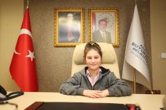 23 Nisan’da Başkan Büyükakın’ın koltuğuna oturan 6. Sınıf öğrencisi Sahra Zeynep, arkadaşları için akıl ve zeka oyunları sınıfları yapılmasını istedi.