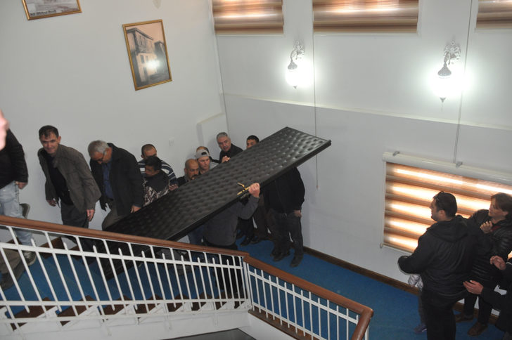 Çanakklale Bayramiç’te, 31 Mart Mahalli İdareler Genel Seçimi’ni kazanarak AK Parti’den belediyeyi devralan CHP’li Başkan Mert Uygun, mazbatasını alarak göreve başladı. Yeni Belediye Başkanı Mert Uygun’un göreve başlaması nedeniyle belediye binası önünde tören düzenlendi. Kurban kesildikten sonra dualarla belediyeye giren Uygun, makam odasının kapısını söktürdü. CHP ve İYİ Partili belediye meclis üyeleri ile ilçe sakinlerinin yoğun ilgi gösterdiği Mert Uygun, ardından da makam koltuğuna oturdu.