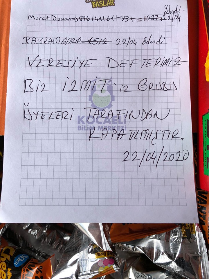 Biz ‘İzmitiz’ Grubu adına Hüseyin Erol, ihtiyaç sahibi ailelere yardımda bulundu. Bakkallara borcu olan vatandaşların veresiye defterlerini de kapatan Erol yaptığı açıklamada, ‘Biz “İZMİTİZ” Grubu değerli üyelerinin destekleri ile hazırladığım erzak kolilerini gerçek ihtiyaç sahiplerine ulaştırırken bir kısmı ile de, bir veresiye defterini kapattım. Kimseyi rencide etmeden, kimseye göstermeden, kapılarının önlerine kendi ellerim ile bıraktım. Yardımlarınızı, İzmit’in çeşitli mahallelerine dağıtmanın manevi hazzını bir kez daha yaşadım. Her zamanki gibi isimlerinin yazılmasını istemeyen, bana güvenerek emanetlerini teslim eden hemşehrilerime müteşekkirim. Ramazan ayının arifesine denk getirmeye çalıştığım hayırlarınızın kabulünü Yüce Allah’tan diliyorum. Veren elleriniz dert görmesin.’ İfadelerini kullandı.