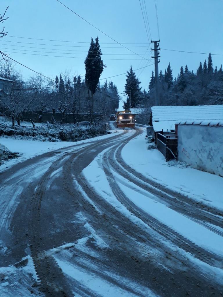Şehrin yüksek noktalarında etkisini gösteren kar yağışına karşı Büyükşehir’in kar timleri çalışmalarına aralıksız devam ediyor