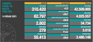 Türkiye’nin korona virüs vaka tablosu açıklandı. Tabloya göre 62 bin 797 kişi hastalığa yakalanırken, 279 kişi de hayatını kaybetti.
