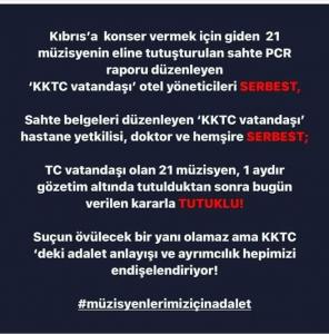 İzmit’te Romanlar Derneği Yöneticisi Hasan Şirin yaşanan olaya büyük tepki gösterdi. Şirin yaptığı açıklamada, ‘ Raporu düzenleyenler serbest, TC vatandaşı olan 21 müzisyen tutuklu. Müzisyenlerimiz için adalet istiyoruz’ İfadelerini kullandı.