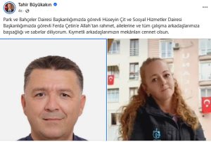 Vefat eden personeller için sosyal medya hesabından başsağlığı mesajı yayınlayan Kocaeli Büyükşehir Belediye Başkanı Tahir Büyükakın, “Park ve Bahçeler Dairesi Başkanlığımızda görevli Hüseyin Çit ve Sosyal Hizmetler Dairesi Başkanlığımızda görevli Ferda Çetin’e Allah’tan rahmet, ailelerine ve tüm çalışma arkadaşlarımıza başsağlığı ve sabırlar diliyorum. Kıymetli arkadaşlarımızın mekânları cennet olsun” ifadelerine yer verdi.