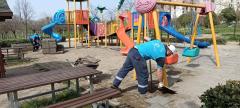 Büyükşehir ekipleri yaklaşan yaz aylarında çocukların hoşça vakit geçirecekleri parklarda bakım yapıyor.