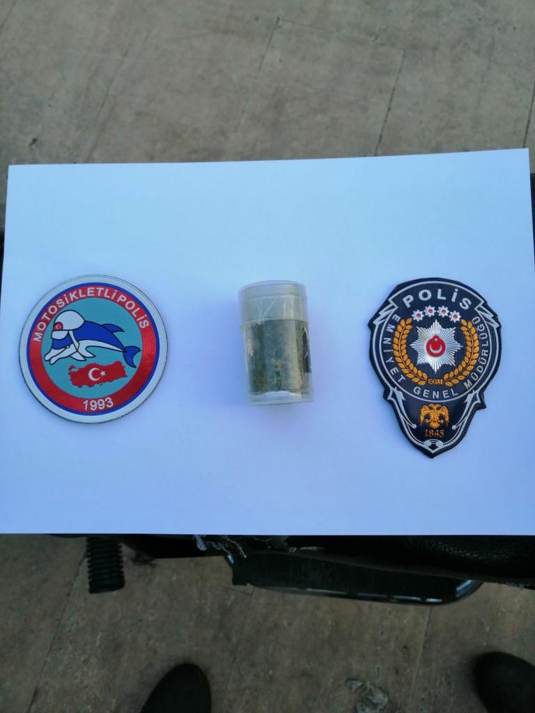 Başiskele ilçesinde Kocaeli İl Asayiş Şube Müdürlüğüne bağlı Yunus Timleri tarafından yapılan denetimler esnasında,bir motosikletin plakasız şekilde ilerlediğini görünce durumdan şüphelenerek sürücü durduruldu. Yapılan kontrollerde motosiklet sürücüsü K.S. olduğu belirlenirken, yapılan üst aramasında ise şahısın üzerinde 9 gram esrar ele geçirildi. Olayla ilgili inceleme başlatan ekipler, motosikletin çalıntı olduğunu ve K.S.’nin ise ehliyetsiz olduğunu tespit etti. Şahıs uyuşturucu madde bulundurmak, çalıntı araç kullanmak suçlarından işlem yapılmak üzere Başiskele Polis Merkezi Amirliği’ne teslim edilirken şahısa ehliyetsiz araç kullanmaktan bin 200 TL para cezası kesildi. Ayrıca Derince ilçesi Yenikent Mahallesi’nde denetimlerine devam eden ekipler, M.A. isimli şüpheli bir şahsı durdurarak üst araması yaptı. Şahsın yapılan üst aramasında 9,5 gram esrar ele geçirildi. Gözaltına alınan şahıs polis merkezine götürüldü.