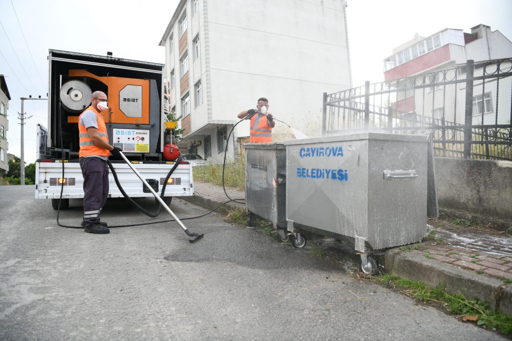 Çöp konteynerleri yerinde yıkanıyor.