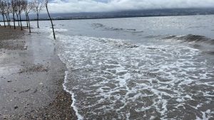 Kocaeli’de kuvvetli rüzgar ve fırtına kent genelinde günlük yaşamı olumsuz etkiliyor. İzmit sahil bandı ve otopark, şiddetli fırtına sebebiyle denizden taşan suyla kaplanırken insanlar kuvvetli fırtına sebebiyle evden çıkmamaya özen gösteriyor.
