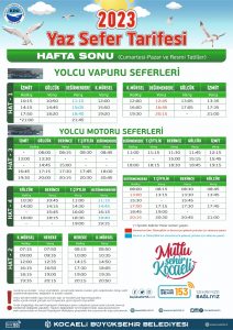 Kocaeli Büyükşehir Belediyesi Ulaşım Dairesi Başkanlığı’na bağlı Deniz Ulaşım Müdürlüğü, Yolcu vapuru seferlerinde yaz sefer uygulamasına geçiyor. Buna göre Yaz sefer uygulaması 03 Temmuz Pazartesi günü başlayacak.