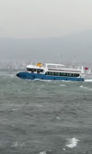 Yer yer fırtına seviyesine ulaşan rüzgar, deniz ulaşımını da olumsuz etkiledi. İzmit-Gölcük seferini yapan vapur, şiddetli rüzgar nedeniyle zaman zaman zor anlar yaşadı. Dalgaların etkisiyle sallanan vapur, yolculara korku dolu anlar yaşattı. O anlar vatandaş kamerasına yansıdı.