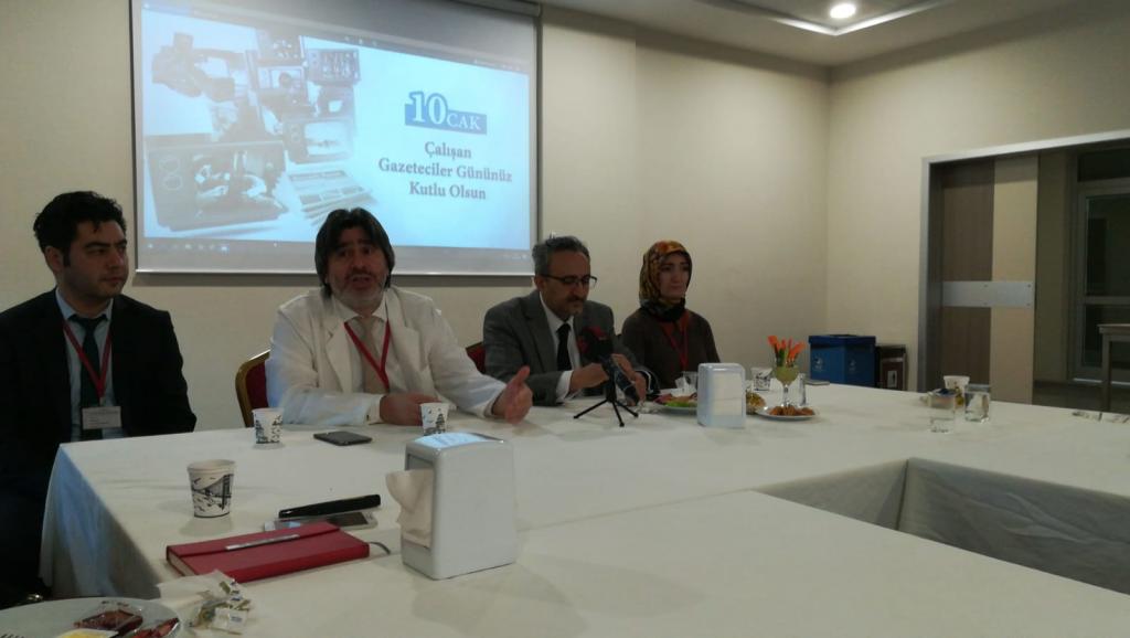 “Burada sizi ağırlamaktan onur duyuyoruz, niyetimiz gazeteciler gününü beraber kutlamak. Bir stratejimiz vardı buraya geldiğinde. 3 farklı şehirde başhekimlik yaptım, böyle olunca bu hastane ustalık eserim olması gerekir. Hastanenin önceki hali, malumunuz uygun bir yer değildi. Hastalarımızın hizmet alması zordu, prefabrik konteynerlerin içinde hizmet verdik. Şükürler olsun enfeksiyon riskine rağmen orada sorunsuz hizmet vermeyi başardık. Yaptığımız araştırmalar sonucunda bütün sorunlar bina kaynaklıydı. Yeni bir bina gerekliydi. Eğer inşaat için gerekli işlemler yapılmasaydı, benim katabileceğim bir şey olmayacağı için ben görevi bırakacaktım.1 yılı tamamladık.