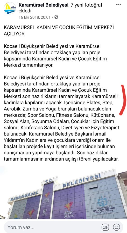 Kocaeli Büyükşehir Belediyesi ve Karamürsel Belediyesi tarafından ortaklaşa yapılan proje kapsamında Karamürsel Kadın ve Çocuk Eğitim Merkezi’nde; Plates, Step, Aerobik, Zumbo ve YOGO branşları bulunuyor.
