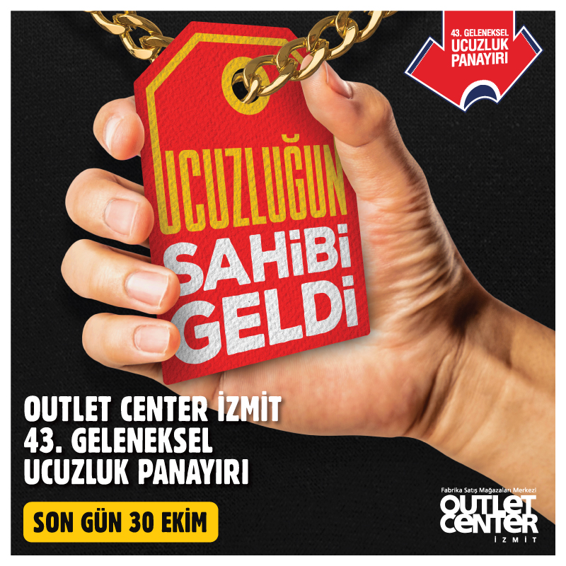 Türkiye’nin ilk ve gerçek outlet merkezi Outlet Center İzmit’te, her yıl tekrarlanarak geleneksel hale gelen Ucuzluk Panayırı kampanyasının 43.’sü, 11 – 30 Ekim 2019 tarihleri arasında gerçekleştiriliyor. 30 Ekim akşamına kadar devam edecek olan 43. Geleneksel Ucuzluk Panayırı kampanyasında; dünyaca ünlü markalar yine inanılmaz panayır fiyatlarıyla satışa sunuluyor.