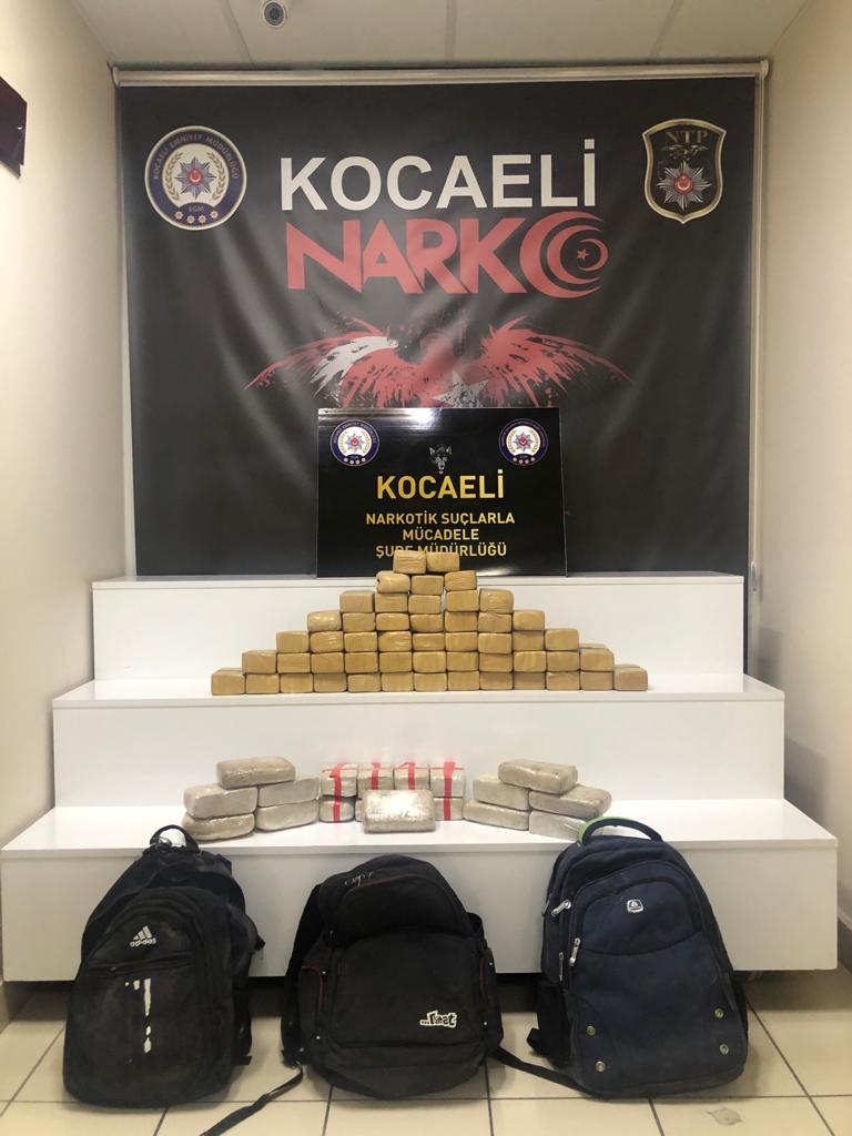 Kocaeli İl Emniyet Müdürlüğü Narkotik Suçlarla Mücadele Şubesi tarafından, alınan duyum ve yapılan istihbari çalışmalar sonucu,  durdurulan bir panelvan araç içerisinden 35 kilo 785 gram eroin ele geçirildi. İddialara göre Kocaeli üzerinden yüklü miktarda uyuşturucu sevkiyatı yapılacağına dair bilgilere ulaşan Kocaeli Polisi, 76 rakam grubu ile başlayan panelvan aracı takibe aldı.  Takibe alınan araç TEM otoyolu İzmit İlçesinde durduruldu. Araçta yapılan aramalarda herhangi bir suç unsuruna rastlanılmadı.   Detaylı arama için Emniyet Müdürlüğüne götürülen ve dedektör narkotik köpeği ile yapılan arama esnasında, köpeğin tepki vermesi üzerine araç içerisinde yapılan incelemelerde değişik yerlere zulalanmış  70 paket halinde 35 kilo 785  gram eroin maddesi ele geçirildi.  Aracı kullanan S.S ise gözaltına alınarak işlemleri için Kocaeli İl Emniyet Müdürlüğüne götürüldü.