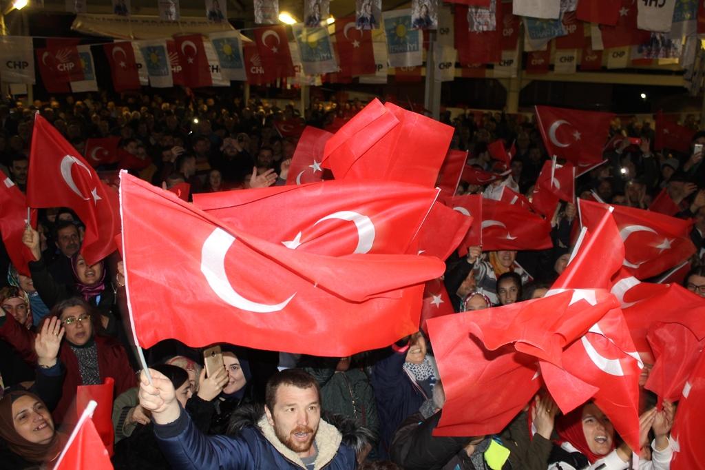 Cumhur ittifakı dediler daha miting alanlarında bile birbirlerinin bayraklarını asamadılar. Burada MHP’li kardeşlerime sesleniyorum. Sizlerin desteğini bekliyorum. Daha bir yaşanabilir bir İzmit için, daha mutlu bir İzmit için desteklerinizi bekliyorum” şeklinde konuştu.