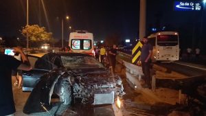 Kocaeli’nin Gebze ilçesinde sürücüsünün direksiyon hakimiyetini kaybettiği otomobil bariyerlere çarptı. Yaşanan feci kazada araçta yolcu olarak bulunan Dilovası Belediyesi Başkan Yardımcısı Sinan Yaşar yaralandı, otomobil ise kullanılamaz hale geldi.