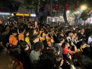 Galatasaray’ın 25. şampiyonluğu Kocaeli’nde renkli görüntülere sahne oldu. Fenerbahçeli taraftarlar kutlamalara katılarak, Galatasaraylı taraftarlara destek verdi.