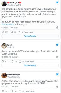Odatv’nin haberine göre; FETÖ elebaşı Fethullah Gülen dün gece zehirlendi. Pensilvanya’daki çiftlikte bulunan örgütün mollalarından biri de intihar etti.