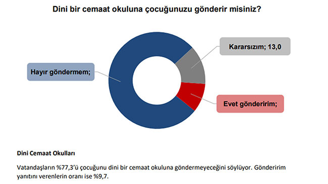“Cemaat okullarına çocuğumu gönderirim” diyenle “bu yapılara güvenim devam ediyor” diyenlerin oranı birbirine yakın. Biri 8.5 diğeri ise diğeri yüzde 9,7.