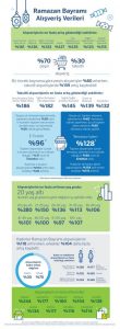 Son birkaç yıldır hızla büyüyen e-ticaret sektöründeki harcamalara bakıldığında, bu yıl Ramazan Bayramında 2022 yılına oranla yüzde 96’lık bir artış gözlemlendi. E-ticaretin toplam harcamalar içindeki payı Türkiye genelinde yüzde 26 düzeyinde olurken, şehirler bazında en yüksek oran yüzde 37 ile İstanbul’da gerçekleşti. Diğer taraftan kadınlar e-ticaret harcamalarını yüzde 103, erkekler yüzde 92 arttırdı.