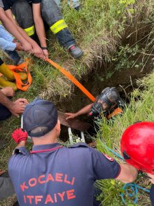 Yaşananları anlatan Cevdet Yılmaz, “Defineciler burayı kazmış, üstünü de kapatmamışlar. Benim ineğim oraya düşmüştü. Sağ olsunlar, Kocaeli itfaiyesine teşekkür ederiz. İneği çıkardılar, var olsunlar. Hayvanım 5 saattir mahsurdu. İtfaiye ekipleri yaklaşık 3 saat uğraştı” dedi.