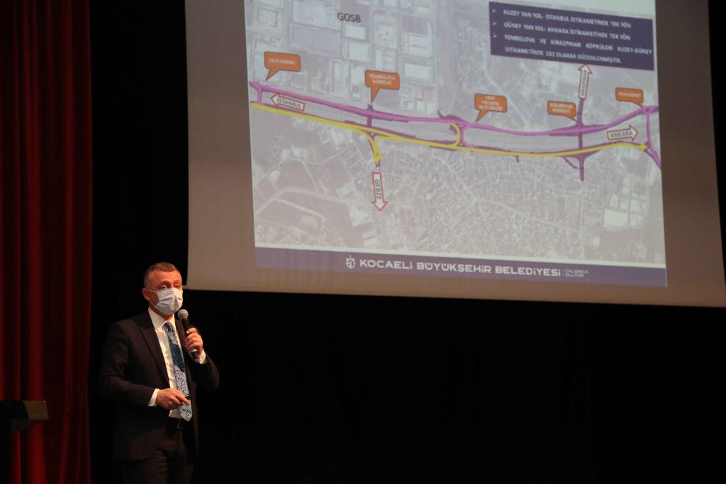 Kocaeli Büyükşehir Belediyesi ulaşıma konfor getirecek dev projelerine bir yenisini ekliyor. Bu doğrultuda Gebze OSB bölgeleri ile Gebze ilçe merkezi arasına Karayolları Genel Müdürlüğü tarafından TEM üzerine inşa edilecek 4 yeni köprünün ayrılma katılma kolları ile yan yol üst yapı imalatları Kocaeli Büyükşehir Belediyesi tarafından yapılacak. “Gebze İlçesi TEM Otoyolu Köprüleri Bağlantı Yolları 1. Etap Yapım İşi” ile Gebze ilçe merkezi – OSB’ler arasında, sabah ve akşam saatlerinde yaşanan trafik yoğunluğunun azaltılması hedefleniyor. Dev proje için Kocaeli Büyükşehir Belediye Başkanı Doç. Dr. Tahir Büyükakın, Gebze Osman Hamdi Kültür Merkezi’ndeki tanıtım programında projeye dair açıklamalarda bulundu.