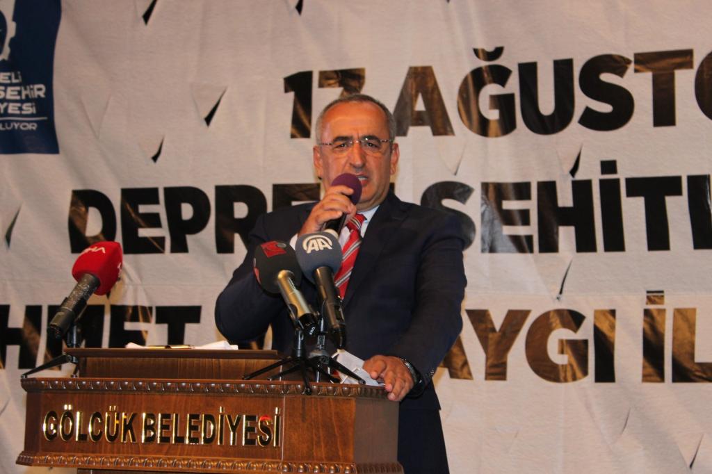 Deprem etkinliğinde konuşan TBMM Başkan Vekili Kocaeli milletvekili Haydar Akar yaptığı konuşmada, “Bu akşam acılarımızı hatırlamak için buradayız. Gölcük depremini hep birlikte yaşadık. Asrın felaketi dedik, Kocaeli yıkıldı dedik. Bugün de deprem sonrası aynı şeyleri yapıyoruz. Gölcük depremi nasıl yardımların yapılması gerektiğini bizlere öğretti. Hızlı müdahale edebiliyoruz. Depremin insan öldürmediğini biliyoruz. Ülkemiz deprem ülkesi. Depremden zarar görmeyecek şekilde bir yapıyı inşa etmeliyiz. Kanunlar çıkıyor ama aynı sorunları yaşıyoruz. Gölcük yenilenmeli, Kocaeli yenilenmeli. Bu değişimi talep etmek zorundayız. Kocaeli’de yıkılması gereken 670 konut var. Ele ele vermeliyiz, değiştirilmesi gereken konutları değiştirmeliyiz” dedi.