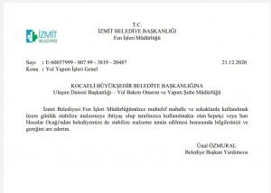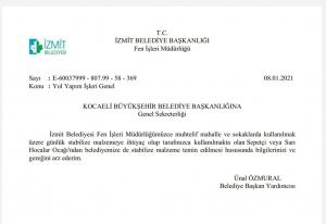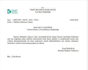 Kocaeli Valiliğinden de stabilize malzeme temini için taş ocağı işletme ruhsatı talebine yanıt alamayan İzmit Belediyesi, taş ocağı ruhsatı alana kadar halkın taleplerini yerine getirebilmek için 29 Temmuz 2019, 21 Aralık 2020 ve 8 Ocak 2021’de Büyükşehir Belediyesinden stabilize malzeme talep etti. Ancak Büyükşehir’den de henüz yanıt alamadı. Vatandaşa hizmet edebilmek için malzeme temini girişimleri sonuçsuz kalan İzmit Belediye Başkanı Av. Fatma Kaplan Hürriyet sosyal medya hesaplarından “Hala cevap bekliyoruz” diyerek süreci kamuoyuyla paylaştı.
