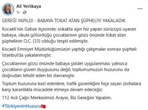 İçişleri Bakanı Yerlikaya duyurdu: Babaya çocuklarının önünde tokat atan şüpheli yakalandı