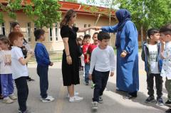 Düzenen parkur ve kaydırakta eğlenen minikler, sonrasında da palyoçalarla eğlenceli vakit geçirdiler. Söylenen şarkılara eşlik eden öğrenciler, palyoçalarla oyunlar oynadılar. Okul bahçesinde miniklerin doyasıya eğlenmesi için kurulan eğlence araçlarıyla vakit geçiren minikler, program sonunda Başkan Söğüt’ e teşekkür etmeyi ihmal etmedi.