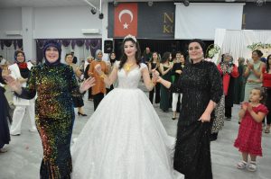 Kandıra Namazgah Kültür Merkezinde gerçekleşen düğün töreninde mutluluğa “evet” diyen genç çifti, her iki ailenin akraba ve dostları yalnız bırakmadı.