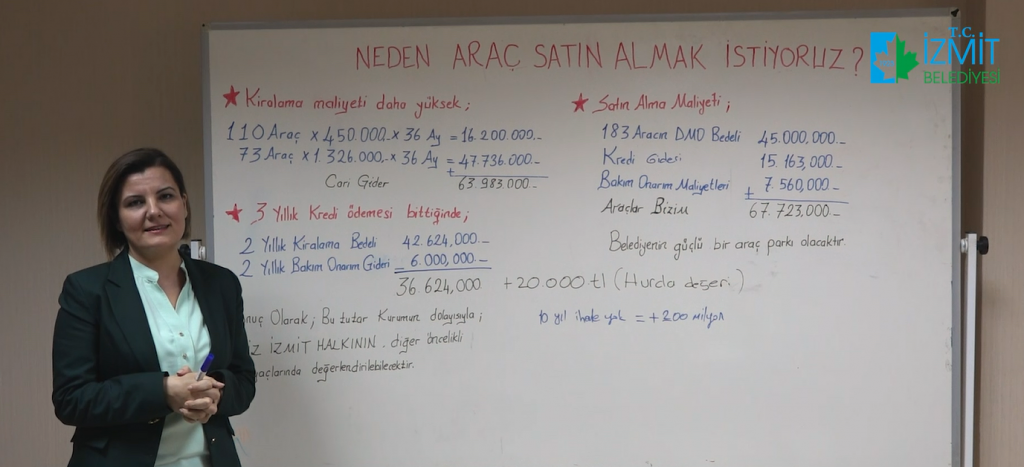 İzmit Belediye Başkanı Fatma Kaplan Hürriyet, belediye hizmet aracı satın almanın neden kiralamadan daha karlı olacağını vatandaşlara rakamlarla anlattı. Hürriyet, araç satın almanın belediyeye sağlayacağı ekonomik kazancı İzmit halkına kalem kelem anlattı.
