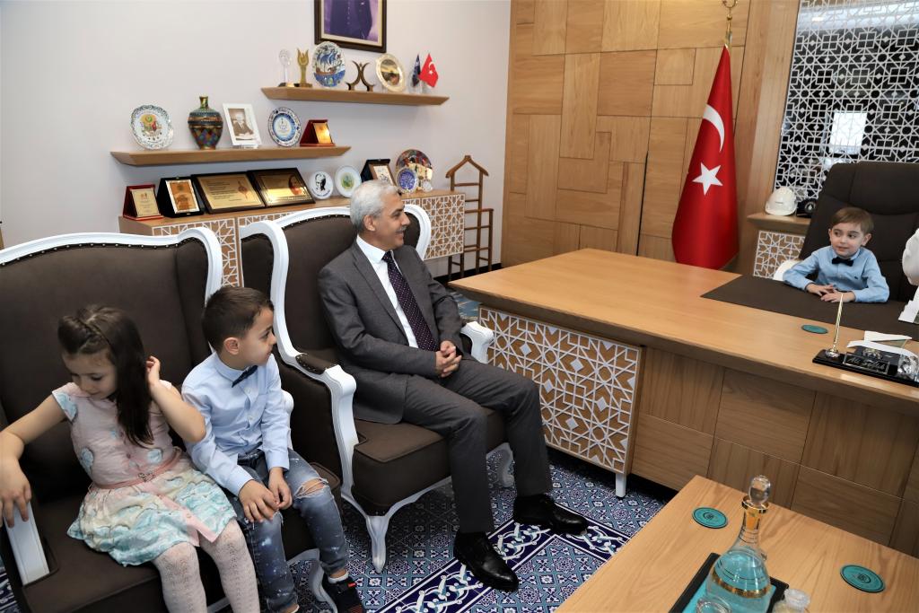 Genel Müdür Ali Sağlık’a teşekkür eden minik çocuklar, ardından Genel Müdür Yardımcıları Uğur Süsoy, Sinan Sokur ve Mustafa Altay’ı da ayrı ayrı ziyaret etti. Minik çocukları koltuklarına oturtan Genel Müdür Yardımcılar, çocukların bayramlarını kutladı.