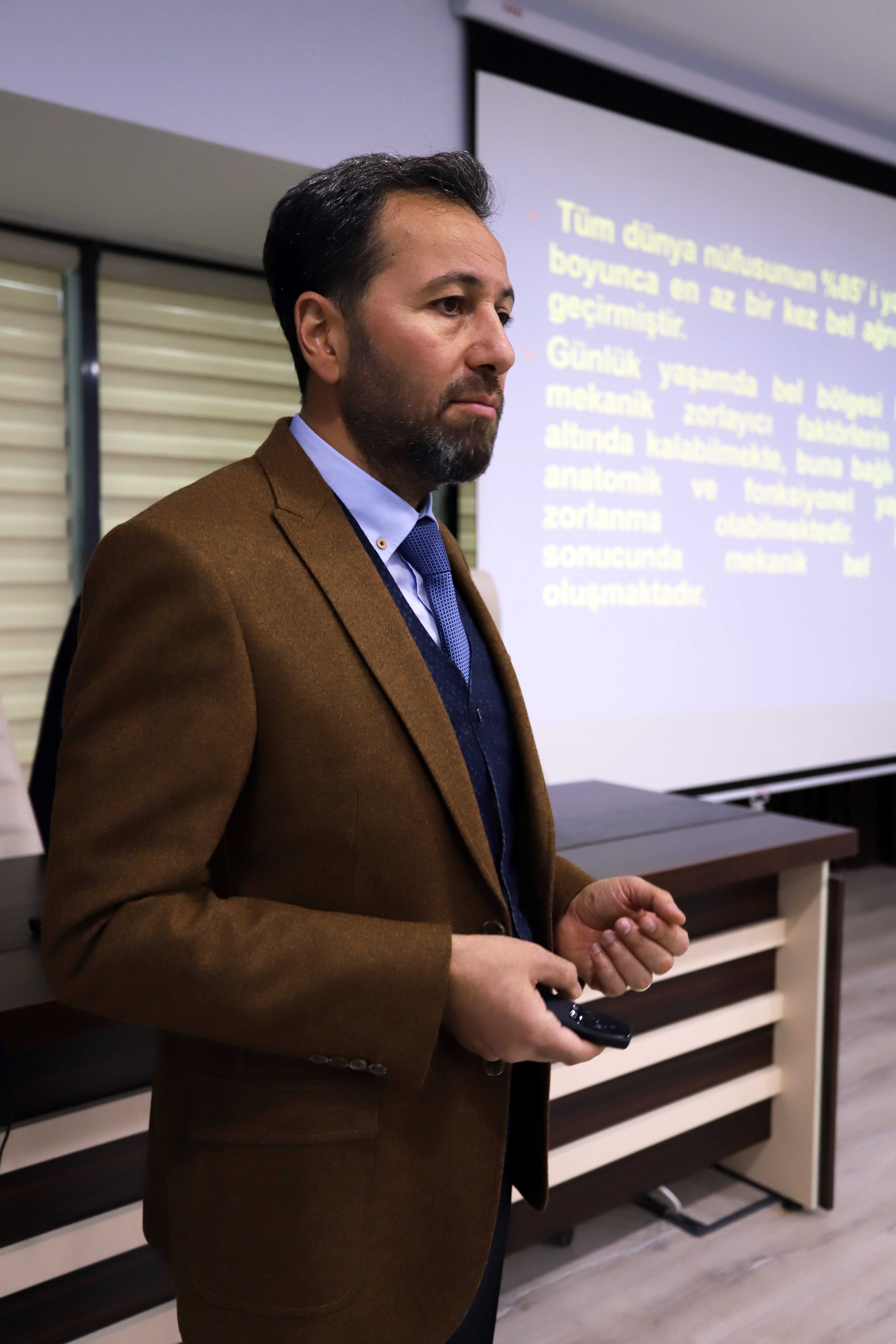Doğru hareket etmek ve ideal yaşam tarzını görsellerle aktaran Dr. Yarar, günümüzün kronik hastalıklarından biri olan “bel fıtığının” önlenmesi ve tedavisi hakkında uyarılarda bulundu. Uygun olmayan pozisyonda hapşırmanın bel fıtığında yırtılmaya yol açacağını ve bunun da istenmeyen sonuçlar doğurabileceğini de aktaran Dr. Hakkı Yarar, bel fıtığından korunmak için ergonomi kurallarının önemli olduğunu kaydetti.