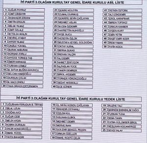 İYİ Parti Genel Başkanı Meral Akşener’in tek aday olduğu kongrede GİK listesinde Kocaeli’den bir isim yer aldı. Eski Milletvekili ve mevcut GİK Üyesi Cumali Durmuş listede yer aldı. Nesli Kondu Çağlayan ise yedek listede yer aldı.