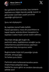 İYİ Parti İl Başkanı Şirin’in devreye girmesiyle il yöneticisi Buğra Yiğit Kılıç, x hesabında Derince Belediye Başkanı Sertif Gökçe’yi ziyaret paylaşımını kaldırmış. Bunun ardından Derince İlçe Başkanı Çakırcı da tepkisini gösterdiği paylaşımını x hesabından kaldırmış.