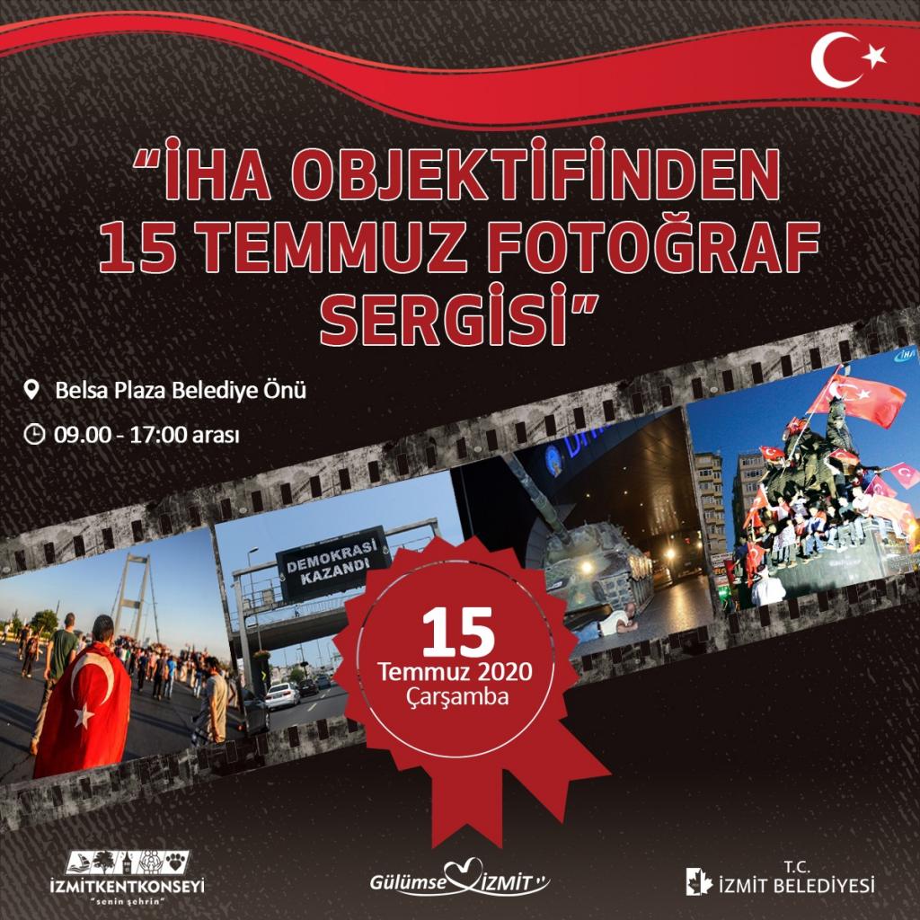 İzmit Belediyesi ve İhlas Haber Ajansı (İHA) ortaklığıyla, 15 Temmuz Çarşamba günü Belsa Plaza önünde, ‘İHA Objektifinden 15 Temmuz Fotoğraf Sergisi’ düzenlenecek